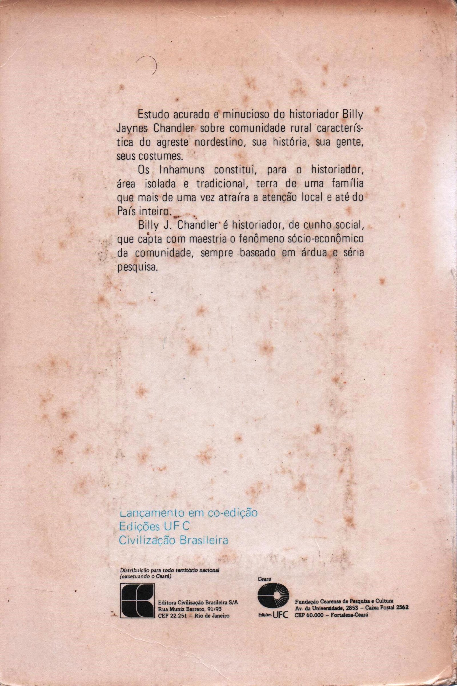 O livro aborda episódios marcantes como os conflitos entre famílias, a organização do poder local, a ocupação do território e os aspectos culturais do sertão, revelando como essas dinâmicas moldaram a identidade da região. Com base em ampla pesquisa documental, Billy Jaynes Chandler constrói uma narrativa rica, que alia rigor acadêmico e leitura envolvente, tornando-se referência indispensável para compreender a história dos Inhamuns.